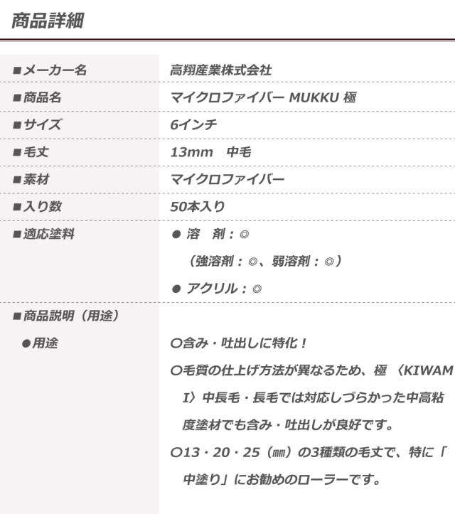 スモールローラー 中毛 13mm 6インチ 50本 マイクロファイバー MUKKU 極 中高粘度 弱溶剤 強溶剤 粗面 多量塗布 111-30 送料無料