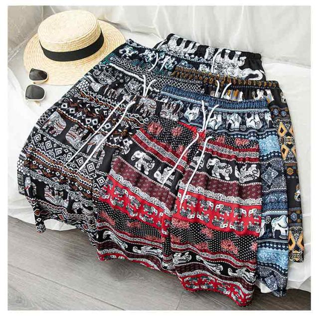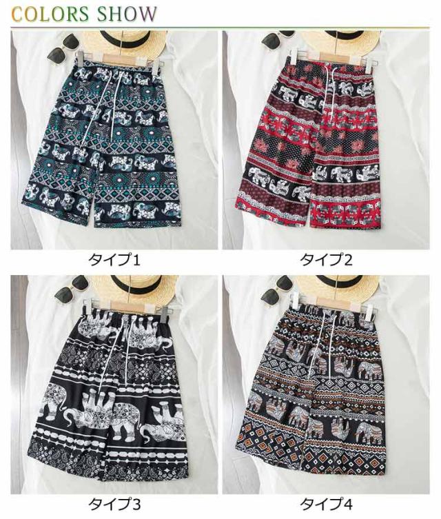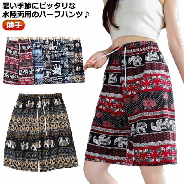 サーフパンツ サーフパンツ アジアン エスニック 水着 ハーフパンツ レディース 5分丈 部屋着 ルームウェア ゾウ柄 軽い 水陸両用 カジュアル 薄手 体型カバー ウエストゴム お洒落 海パン プール 旅行