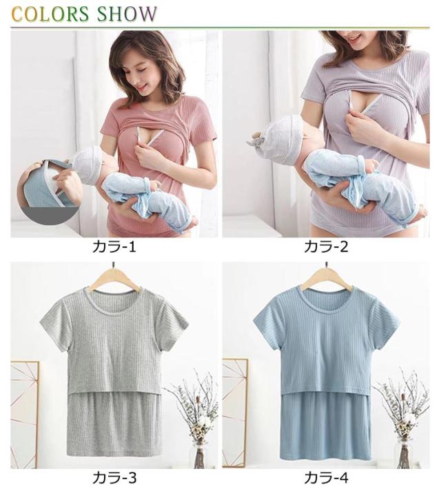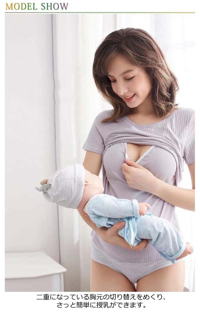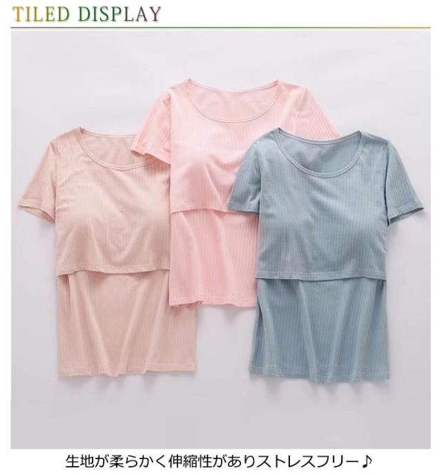 カットソー 授乳口付き Tシャツ 半袖 授乳口付き 授乳服 授乳服 授乳用 トップス マタニティウエア 産前 産後 シンプル お洒落 夏物 カップポケット付き クルーネック 大きいサイズ