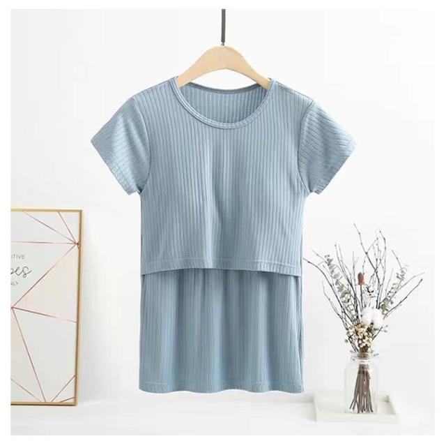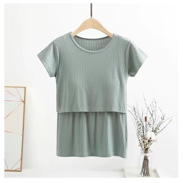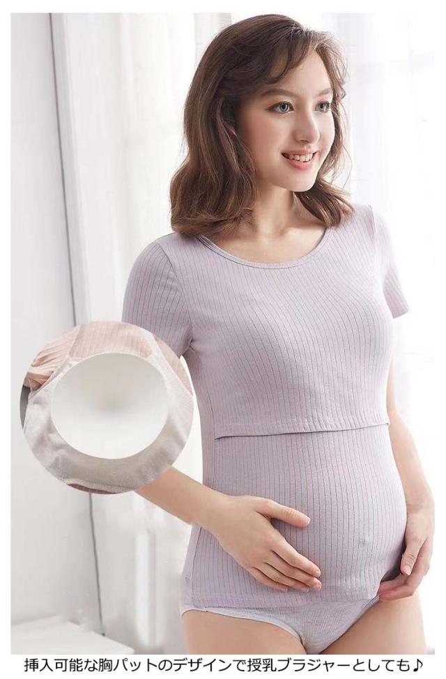 | 産前〜産後まで長く着ていただける半袖カットソーです。 生地が柔らかく伸縮性がありストレスフリー♪ 吸湿性と放湿性に優れており、リブの風合いがおしゃれです。 二重になっている胸元の切り替えをめくり、さっと簡単に授乳ができます。 挿入可能な胸パットのデザインで授乳ブラジャーとしても♪ 家の中だけでなく、産前産後の入院服としてもご使用頂けます。 | |