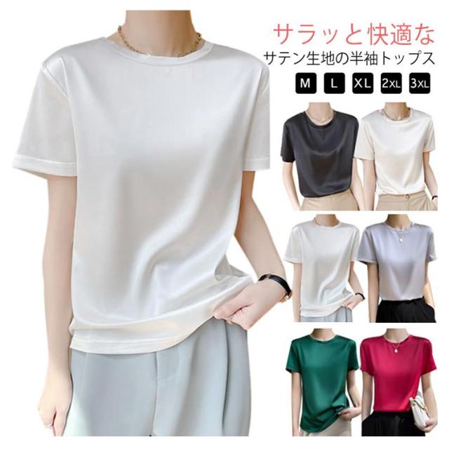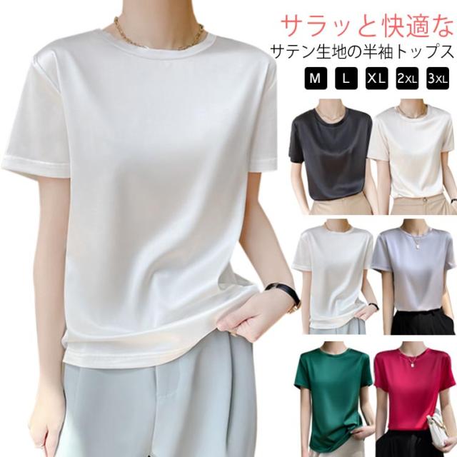 サテン風 半袖ブラウス シャツブラウス 大きいサイズ 半袖 レディース シャツ プルオーバー 滑らか 夏服 トップス 吸湿 インナー tシャツ 薄手 体型カバー シャツ ブラウス 速乾 高品質 光沢感 清楚感 重ね着 大人 女性 ひんやり 通勤 OL ギフト きれいめ