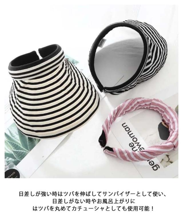 | 2タイプ×4色 可愛くておしゃれに 折り畳みタイプで伸縮自由自在 2wayで使えるカチューシャサンバイザー バイザー部分が自由に変形できて日差しをしっかりガードが新登場!! ベイザー部分が自由に変形できるので、日差しの強さによってお好みで調整できちゃう! 収縮自在で丸めて畳めばバックに入れて、外出に便利! 日差しが強い時はツバを伸ばしてサンバイザーとして使い、 日差しがない時やお風呂上がりにはツバを丸めてカチューシャとしても使用可能! ストライプ柄ですっきり小顔! クルクル丸めるとカチューシャに! | |