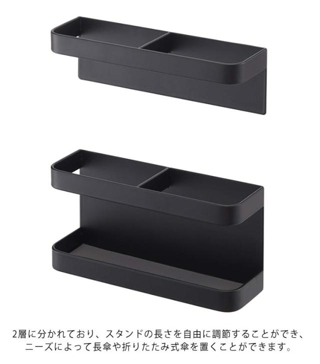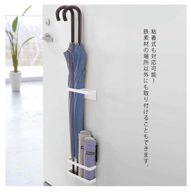 | シンプルなデザインながら実用性が高い傘立てです。 背面に磁石が付いた、磁石が付けられる場所ならどこでも設置できる。 粘着式も対応可能!鉄素材の場所以外にも取り付けることもできます。 傘立ての底にはトレイが付いており、床に水が垂れるのを防止、小物を整え、心地よい空間を創る。 2層に分かれており、スタンドの長さを自由に調節することができ、ニーズによって長傘や折りたたみ式傘を置くことができます。 傘立てをドアなどに付けることで玄関のスペースを広く使うことができます。 | |