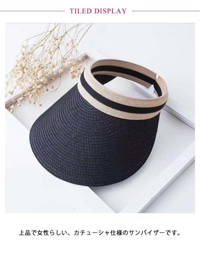 | 麦わらサンバイザー 全6色 ゴルフやテニスなどのスポーツにも使えるおしゃれなレディースサンバイザー。 上品で女性らしい、カチューシャ仕様のサンバイザーです。 シンプルながらもおしゃれなバイカラーデザインなので、被るだけで大人可愛いアイテム。 また、カチューシャタイプなので、髪型を崩さず着用できます。 普段使いはもちろん、海やプール、ゴルフやアウトドアにも最適です。 夏のファッションアイテムとして着こなせる麦わらサンバイザーです。 <details> わらを編み込み、柔らかく肌触りが良いデザインに ナチュラルテイストで、高級感のある仕上がりに 通気性を確保し蒸れにくい設計に 大きなツバで、日差しを広範囲でカット 流線型のデザインで頭にしっかりフィットします 吸湿性、通気性に優れたスウェットバンドを使用 | |