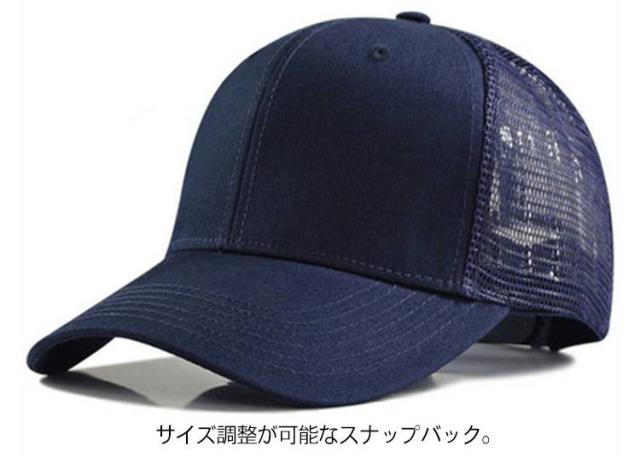 | 頭囲68cmまで対応の大きいサイズがあります! シンプルですっきりとした後頭部がメッシュの無地キャップです。 後ろがメッシュになっていて蒸れることなく被れる優れもの。 男性、女性、どちらでもかぶりやすい定番カラーを揃えました。 サイズ調整が可能なスナップバック。 かぶる人に合わせてスナップでサイズの調節ができるのが嬉しいポイント。 シルエットは大きめでクラウンが高めで深さがあるので、どんな顔型でもバランス良く被りやすいのもポイント。 | |