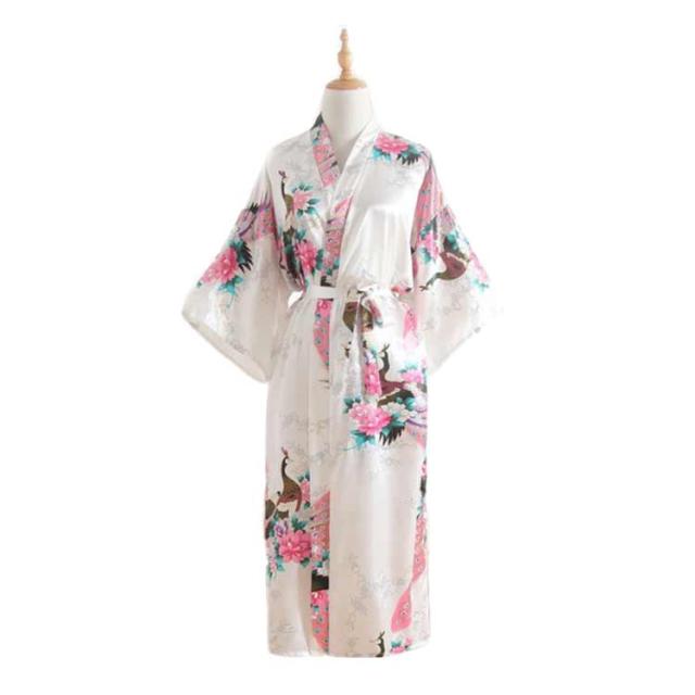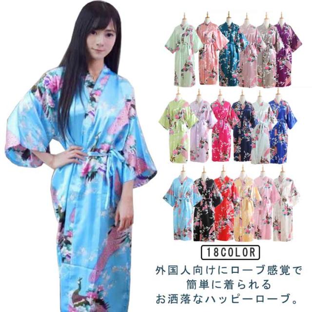 | 外国人への贈り物に最適♪ 外国人向けにローブ感覚で簡単に着られるお洒落なハッピーローブ。 羽織って、ベルトを結ぶだけ。ローブ感覚で簡単に着られる着物ガウン。 シルクのような肌触りと光沢、柔らかくて軽くてツルツルの生地、お風呂上がりやパジャマとしてもお勧め。 孔雀と花のゴージャスな柄、舞台やステージの衣装にも◎ おうち時間のリラックスタイムや和風のコスプレ、外国のお友達へのプレゼントなどにも。 | |