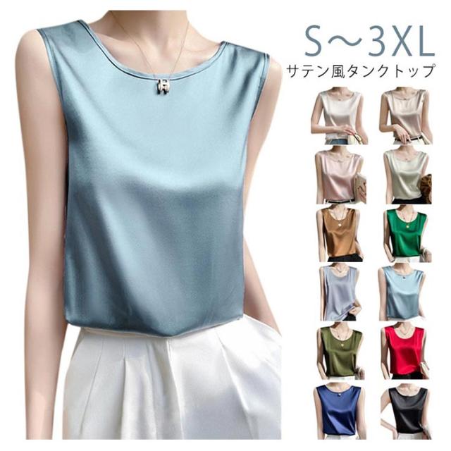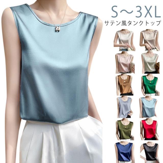 サテン風 ゆったり サテン風タンクトップ Uネック サテン風タンクトップ インナー 大人 レディース ブラウス 大きいサイズ 肌着 ショート丈 袖なし 重ね着 春夏 光沢感 ツルツル ブラ紐隠し 薄手 タンクトップ トップス 女性 無地 OL オフィス