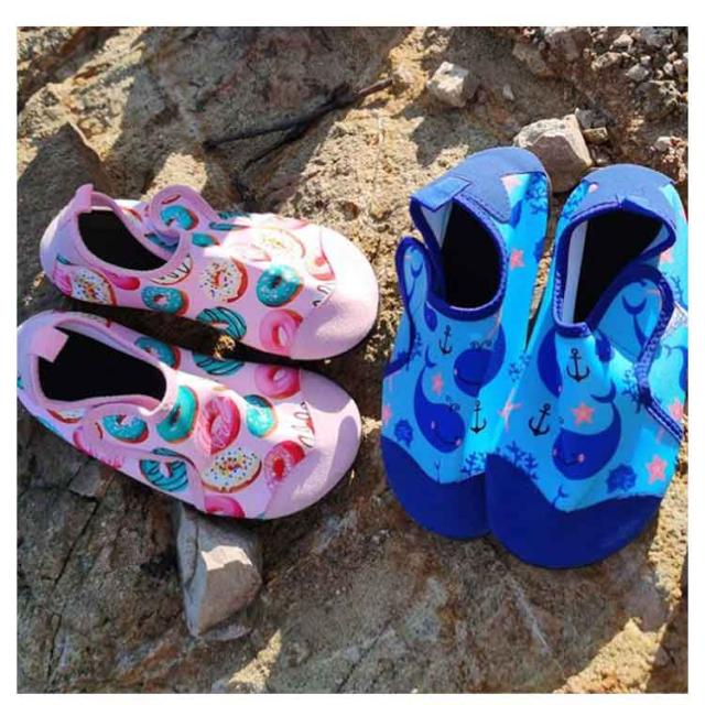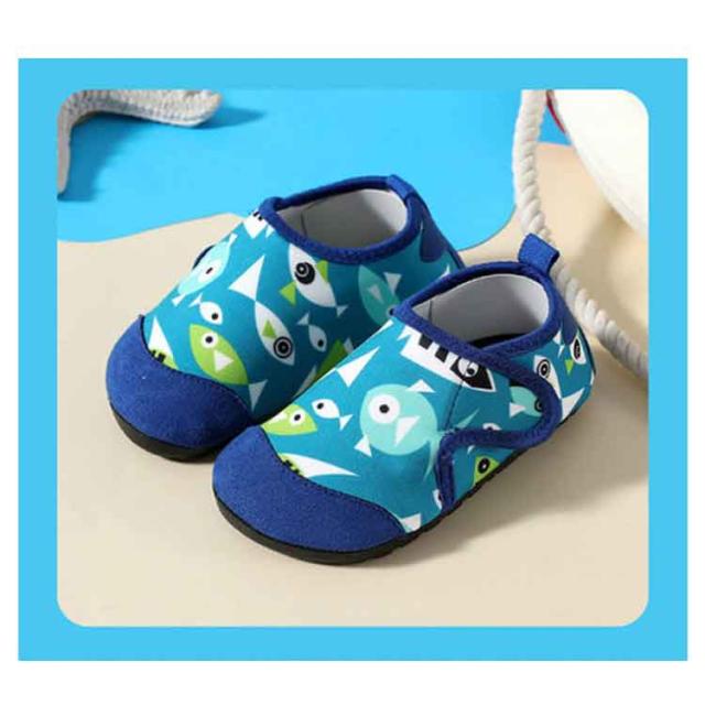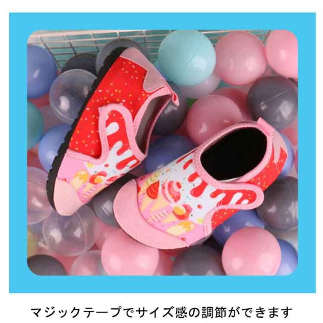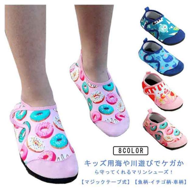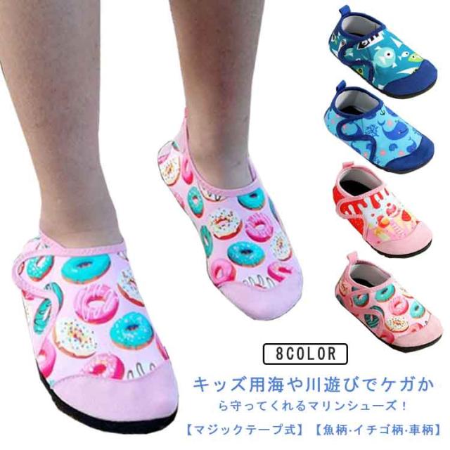 ビーチ 滑り止め アクアシューズ 速乾 ビーチシューズ キッズ 子供 厚底 水陸両用 魚柄 イチゴ柄 車柄 通気 快適 マリンシューズ マジックテープ付き 軽量 川遊び 海 小さいサイズ 川 岩場 シュノーケリング マリンスポーツ シュノーケル ダイビング ウォーターシューズ