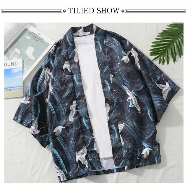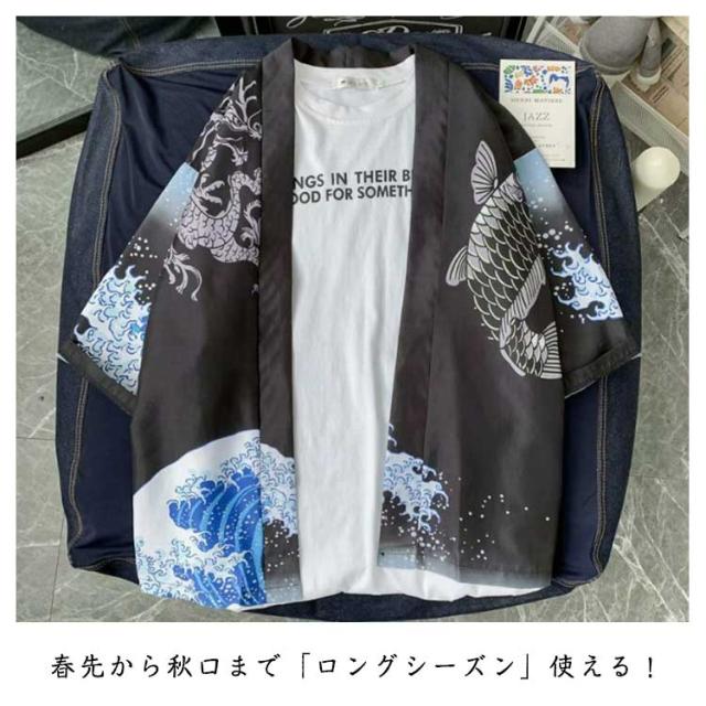 シャツ メンズ 羽織 半袖 はっぴ 法被 甚平 作務衣 夏 五分袖 祭り 半被 半纏 部屋着 男性用 プリント イベント 祭り用 大きいサイズ おしゃれ トップス 春夏 送料無料