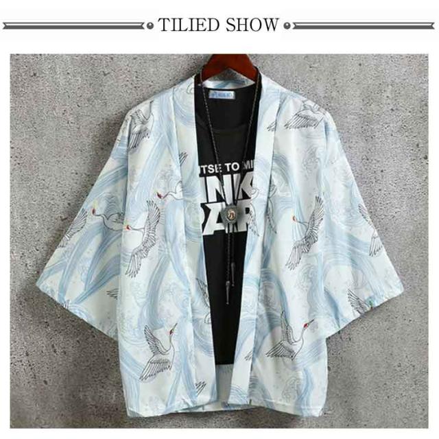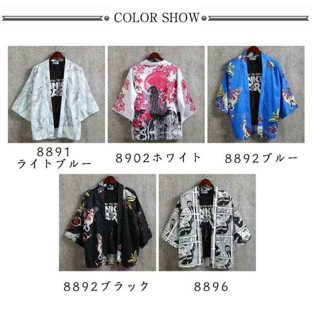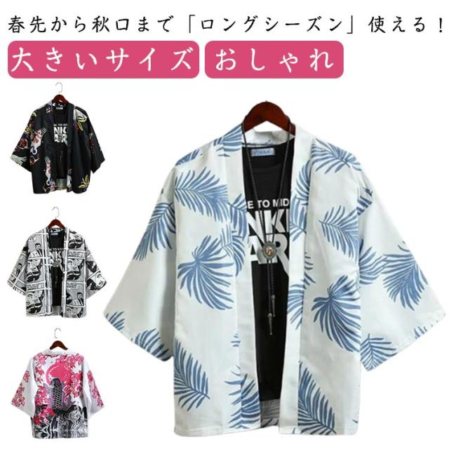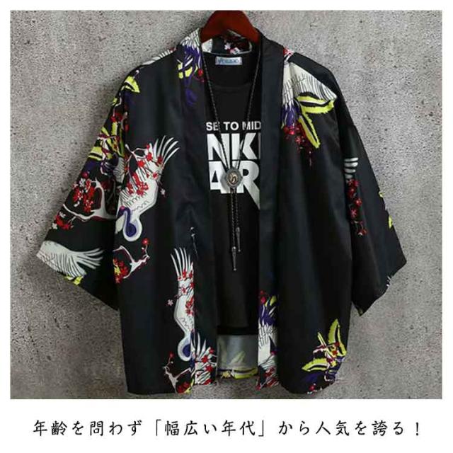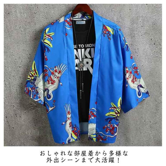 甚平 はっぴ 男性用 祭り 羽織 シャツ 作務衣 法被 半袖 五分袖 シャツ 半被 半纏 部屋着 大きいサイズ プリント メンズ おしゃれ トップス 春夏
