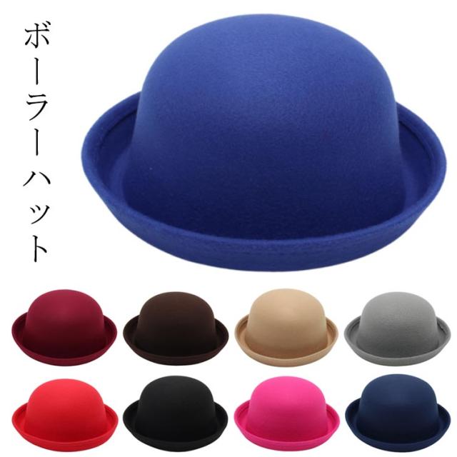 子供用 フェルトハット ボーラーハット シンプル レディースハット キッズハット つば付きハット 親子コーデ 帽子 帽子 メンズ レディース 無地 ぼうし 男の子 女の子 フェルト帽 ボーラーハット FELT