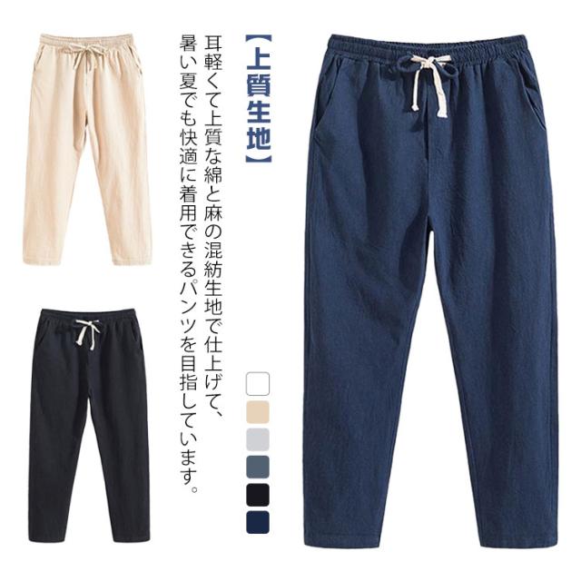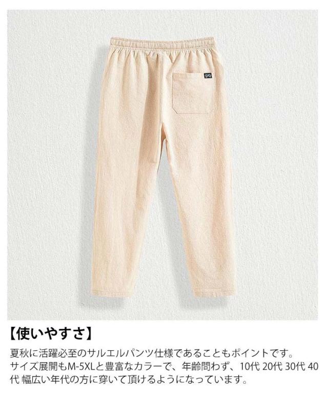 サルエルパンツ 9分丈 ズボン カジュアル イージーぱんつ 涼しい 麻パンツ メンズ アンクル丈 サルエルパンツ 無地 ワイドテーパードパンツ 夏用 袴パンツ お洒落 ボトムス 大きいサイズ ロングパンツ 春 夏 ゆったりパンツ