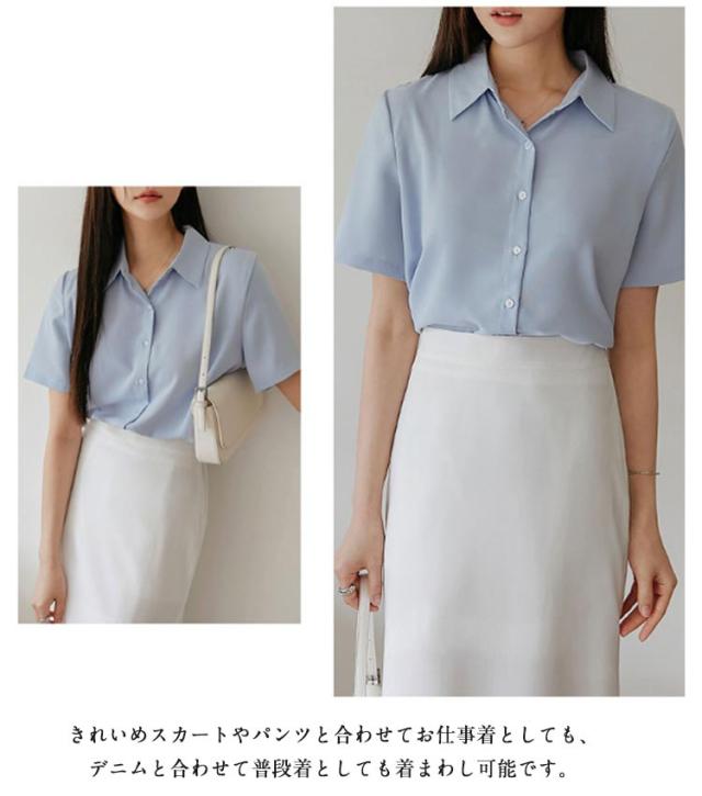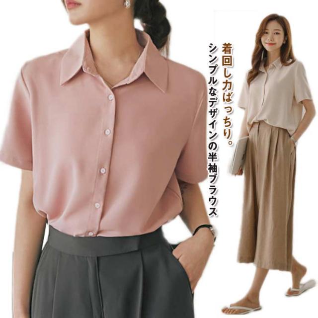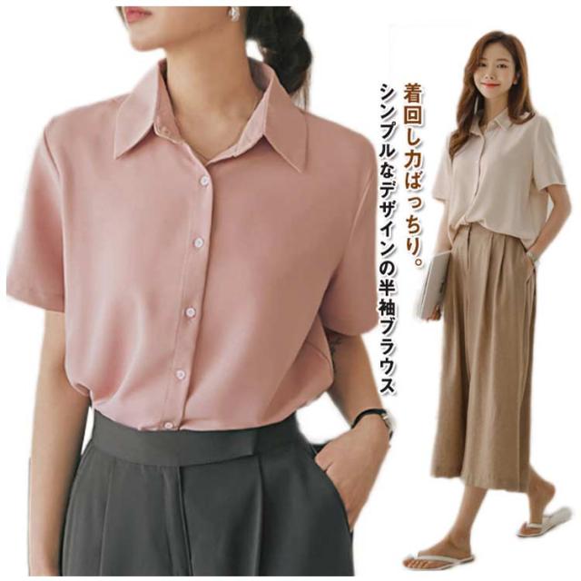 ブラウス レディース レギュラーカラー 半袖 ワイシャツ ブラウス 事務服 おしゃれ レギュラー 半袖 開襟 襟付き yシャツ 大人 トップス シャツ フォーマル フェミニン オフィスカジュアル 前開き 入学式 卒業式
