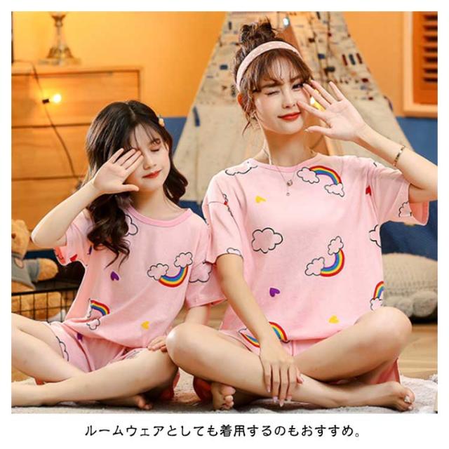 綿 ベビー ジュニア キッズ 半袖 パジャマ ショートパンツ 女の子 子供 かわいい 子供パジャマ パジャマ ルームウェア 上下セット 部屋着 夏 半袖パジャマ 子ども こども コットン 親子 セットアップ 寝間着 寝巻き