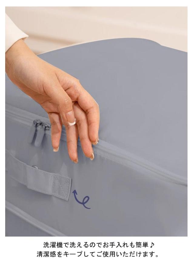 | 季節ごとの衣替えや整理整頓に最適な布団収納袋です。 ファスナーを閉めるだけで簡単に圧縮可能!約40%のスペースを節約できます。 掃除機などで空気を完全に圧縮するタイプと違い、布団を傷める心配がありません。 取っ手が付いているので、持ち運びや取出しも楽ちん。 洗濯機で洗えるのでお手入れも簡単♪清潔感をキープしてご使用いただけます。 使わない時に、折りたたんで収納することができますので、省スペース! | |