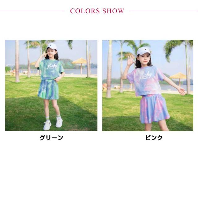 ダンス衣装 タイダイ 女の子 半袖tシャツ スカート 上下セット キッズ ジャージ 子供服 セットアップ ガールズ 夏服 スポーツウェア ダンス服 子供服 運動着 ジュニア服 テニス ヒップホップ ジュニアスポーツウェア
