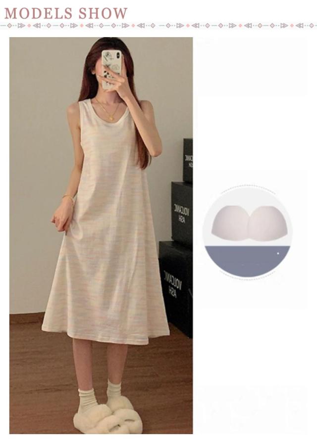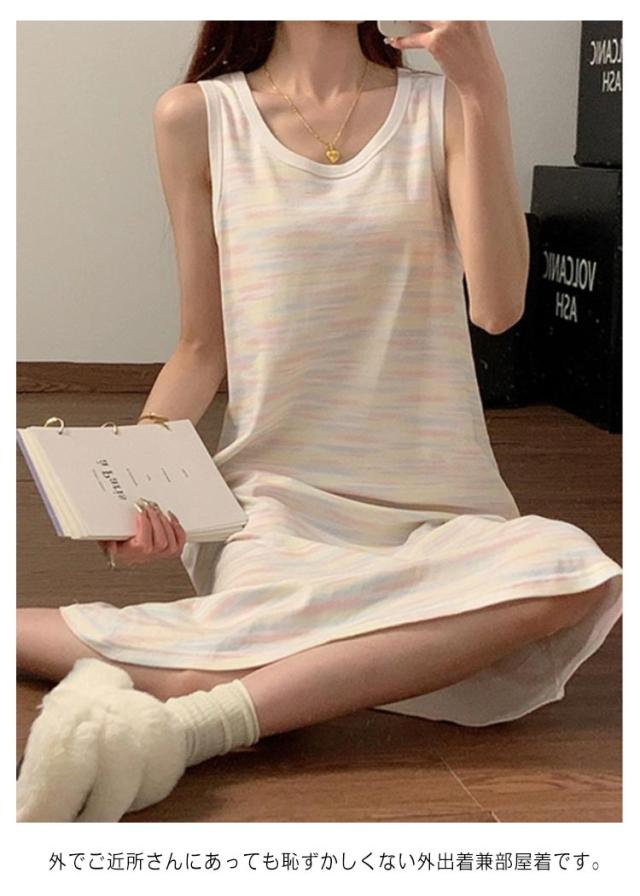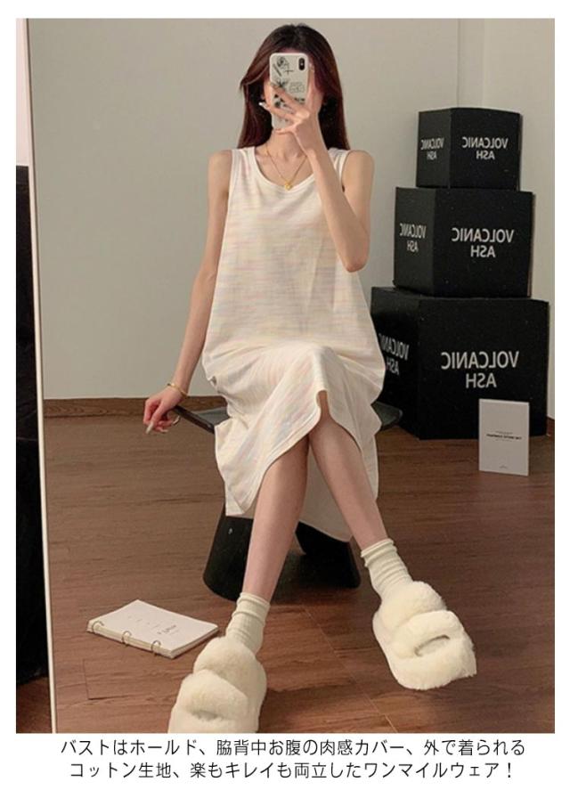 部屋着 ブラカップ付きワンピース タンクワンピース タンクトップ 送料無料 ノースリーブ ワンピース Aライン カップ付き キャミワンピ 膝下 ルームワンピース ルームウェア パジャマ 外出 インナー おしゃれ 20代30代 40代