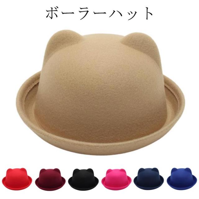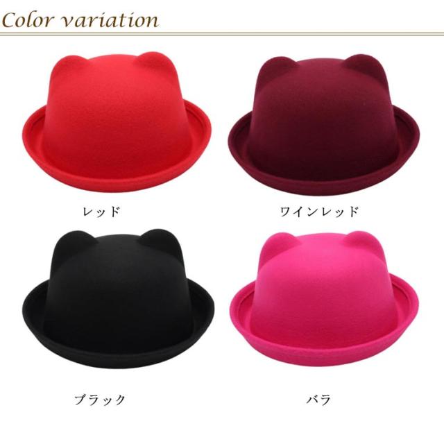つば付きハット 猫耳 キッズハット 帽子 ネコ耳 無地 子供用 シンプル ボーラーハット 親子コーデ FELT フェルトハット ネコ耳 メンズ レディース 帽子 ぼうし レディースハット 女の子 フェルト帽 親子帽子 男の子