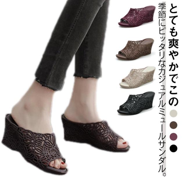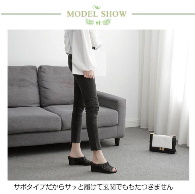 | とても爽やかでこの季節にピッタリなカジュアルミュールサンダル。 サボタイプだからサッと履けて玄関でももたつきません♪ かかと部分がないので、手を使わずに脱ぎ履きできる楽ちん仕様。 ウェッジソールで疲れにくく、美脚効果も絶大です。 とても軽量設計で見た目のデザインだけでなく足にも優しい設計。 さらにヒール効果で、スタイルアップと女性らしさを引き立たせることが出来ます! | |