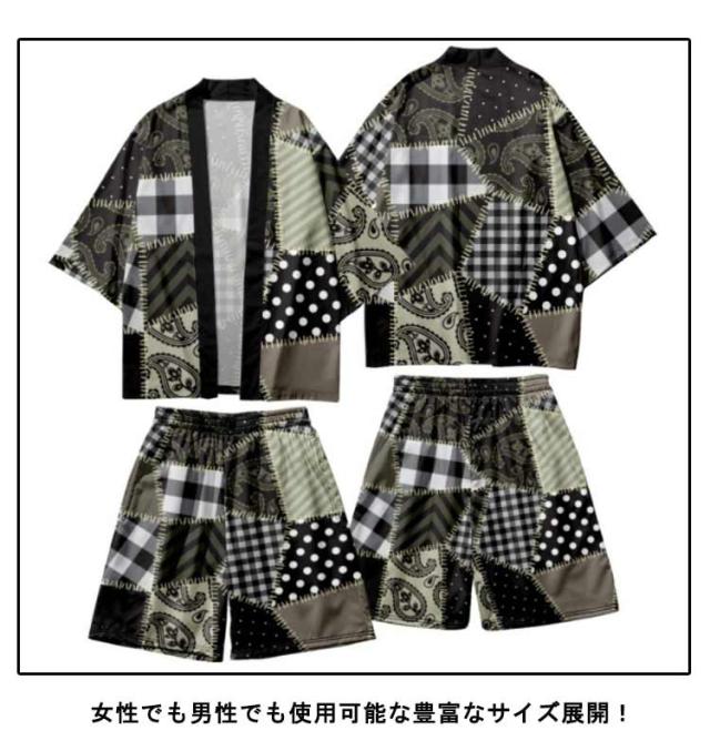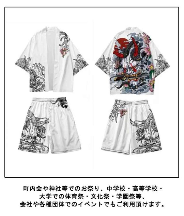| 夏のおしゃれに欠かせない♪ メンズ羽織セットアップ。 サラサラした生地が涼しく快適。 古風和柄を入れることで粋を演出し、夏のリラックスタイムに♪ 町内会や神社等でのお祭り、中学校・高等学校・大学での体育祭・文化祭・学園祭等、会社や各種団体でのイベントでもご利用頂けます。 エアコンの効きすぎた部屋で1枚羽織るのにちょうどいいです。 女性でも男性でも使用可能な豊富なサイズ展開! | |