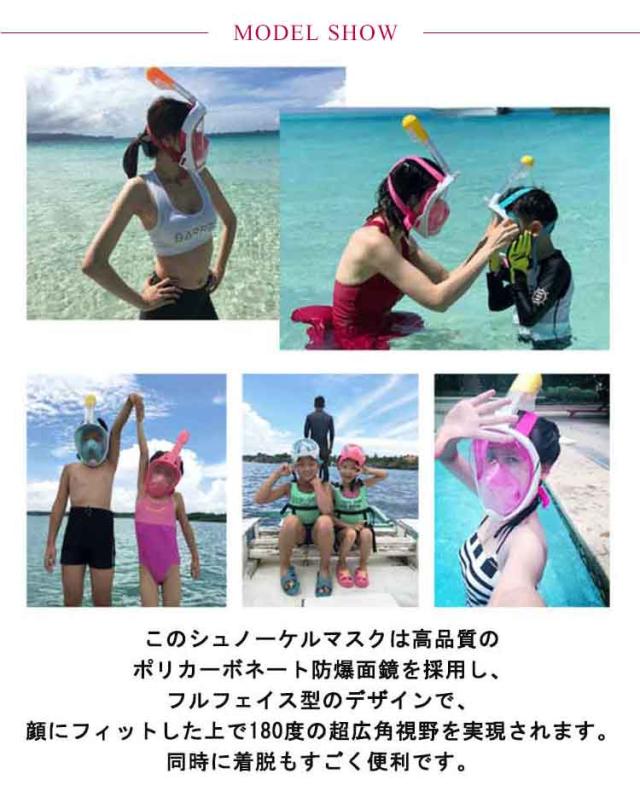 シュノーケル キッズ 子供 フルフェイス シュノーケル シュノーケリング シュノーケル セット ドライシュノーケル マスク フルフェイスマスク 2点セット 曇り止め シュノーケリング 水中メガネ 4-14歳 子供用 シュノーケル マスク