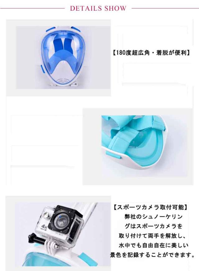 | 4-14歳子供用フルフェイスマスク。 【180度超広角・着脱が便利】このシュノーケルマスクは高品質のポリカーボネート防爆面鏡を採用し、フルフェイス型のデザインで、顔にフィットした上で180度の超広角視野を実現されます。同時に着脱もすごく便利です。 【浸水防止・曇り止め】この潜水マスクは排気ファンの原理を採用し、より効果的な曇り止めです。また環境に優しい食品グレードのシリコン製はアレルギーの発生を減らすだけでなく、水中で使用する際の浸水を効果的に防止されます。 【スポーツカメラ取付可能】弊社のシュノーケリングはスポーツカメラを取り付けて両手を解放し、水中でも自由自在に美しい景色を記録することができます。 【調節可能なバックル】このシュノーケルマスクは調節可能なバックルなので、お好みの長さを自由に調整することができ、長時間の着用でも快適です。 【呼吸用パイプ付き】ボール式呼吸パイプの設計なので、水に入ると上部バルブが自動的に閉じて水の流入を防止し、快適に呼吸ができます。潜水がより楽しくなります。 | |