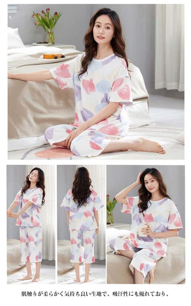 綿 夏 夏用パジャマ ルームウェア レディース パジャマ 夏用パジャマ パジャマ かわいい 部屋着 可愛いパジャマ 半袖パジャマ 疲れが取れ るパジャマ 襟なし 夏 綿 半袖 上下セット 大人用 パジャマ 大きい ばくね