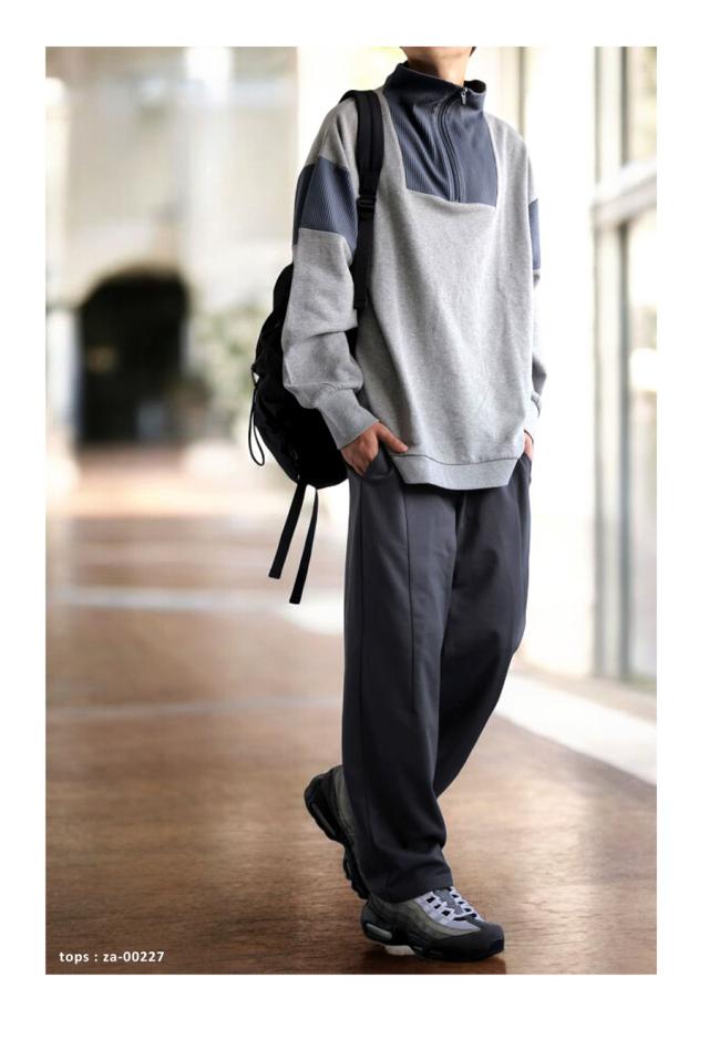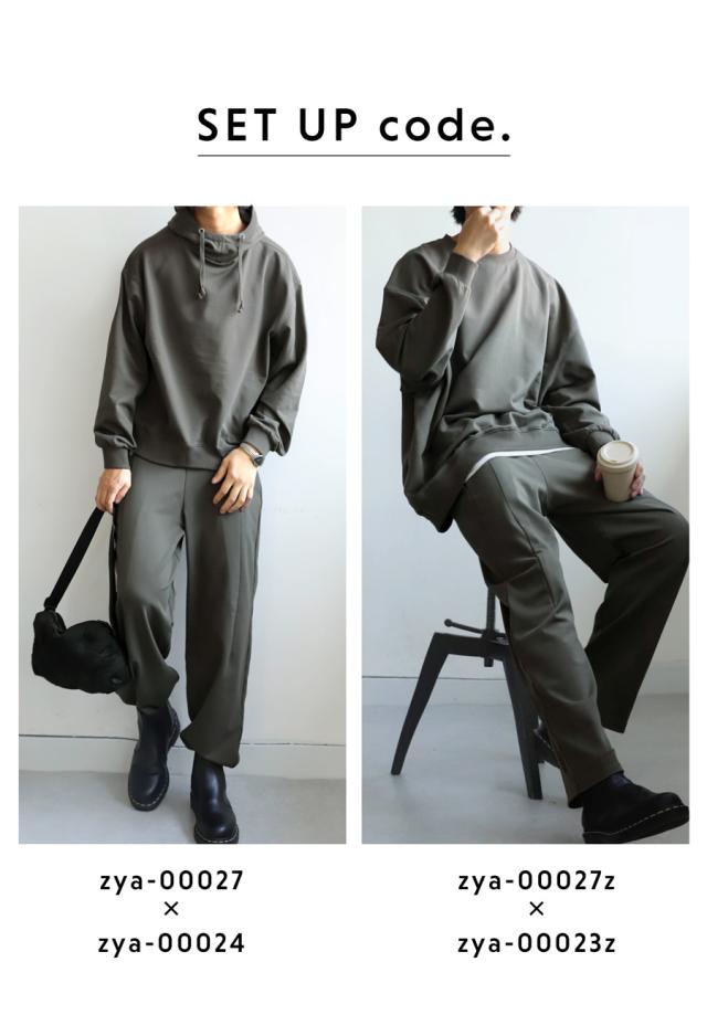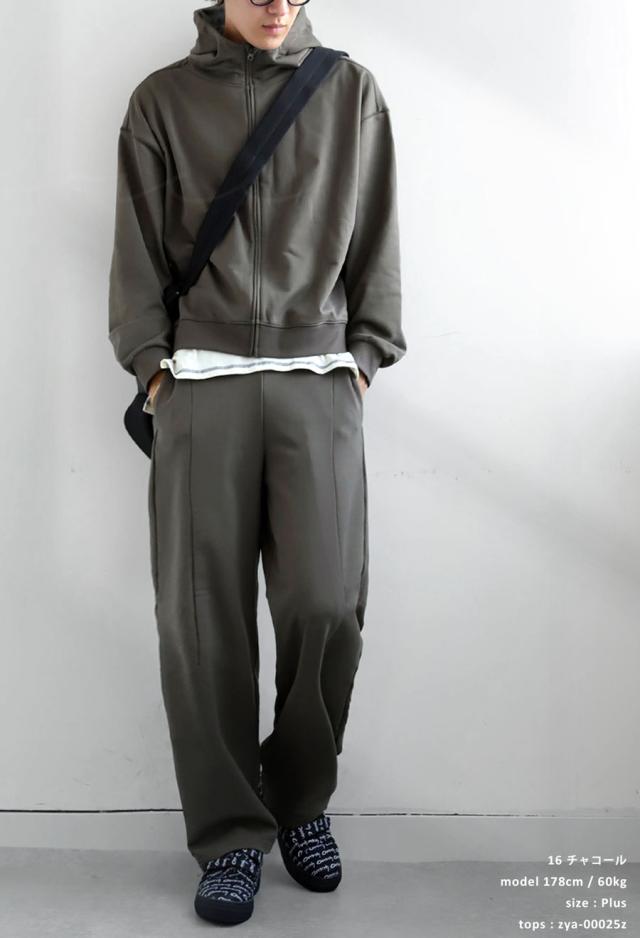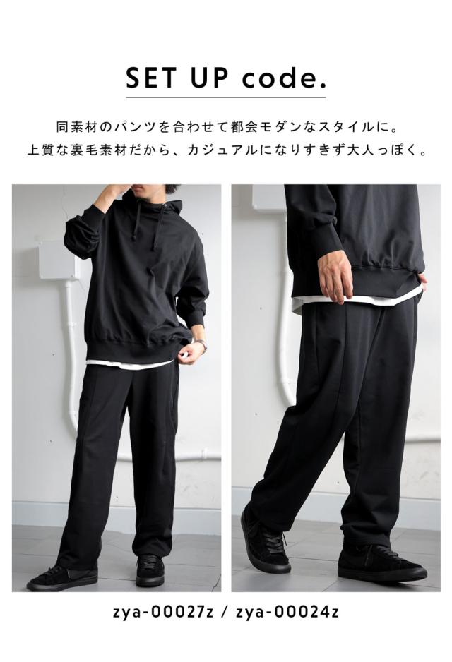 zya-00027z セットアップ テーパードパンツ ロング ストレッチ ポリ裏毛 タック きれいめ 上品 軽い 高機能 ゆったり サイズ展開 シンプル 着心地抜群 リラックス 大きめ ユニセックス