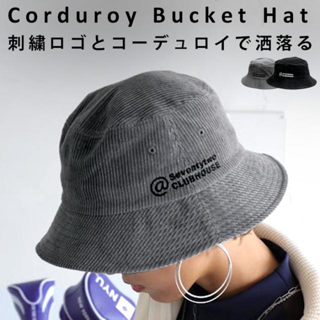 zst-00077 ハット コーデュロイハット コーデュロイ バケットハット バケハ ツバ付き 綿100 刺繍ロゴ ロゴ 紫外線対策 サイズ展開 暖かい あったか ゆったり 普段使い ユニセックス