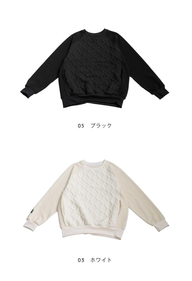 zst-00075z ダイヤ柄トップス セットアップ ポケット付き 長袖 ラグラン 異素材 切り替え 丸首 刺繍 ロゴ ゆったり サイズ展開 シンプル きれいめ 体型カバー 大きめ ユニセックス