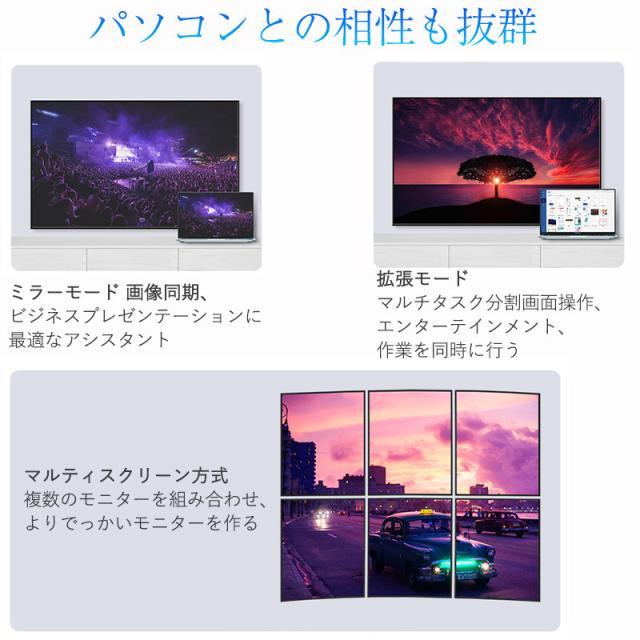 解像度:3840×2160/60Hzまで(4K@30Hz、2K@60Hz、1080P、720P等のHD解像度に対応)
