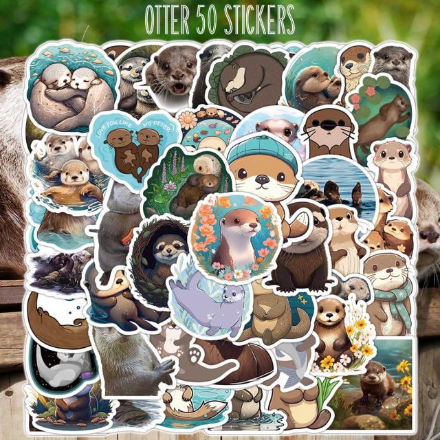 コツメカワウソ ステッカー 50枚セット PVC 防水 シール カワウソ かわうそ 獺 川獺 動物 ペット ラッコ 水族館 スーツケース MacBook