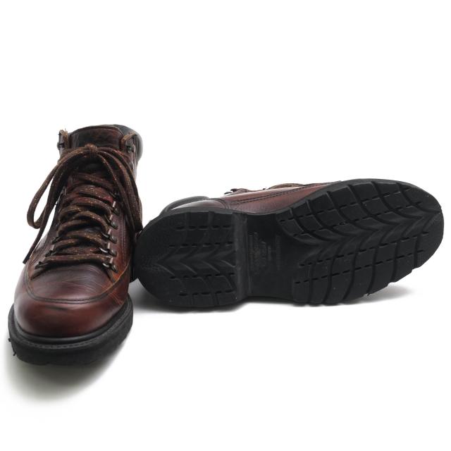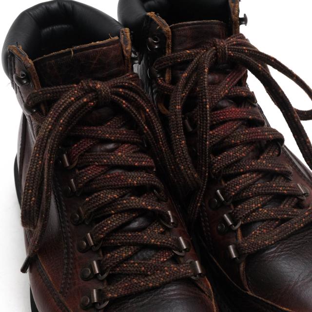 肉厚なカウハイドレザーをアッパーに用いたクラシカルなヴィンテージマウンテンブーツ。ライニング部分にはチェック柄のウールファブリックを使用し、保温性はもちろんデザイン性にも富んだ一足に仕上がっております。