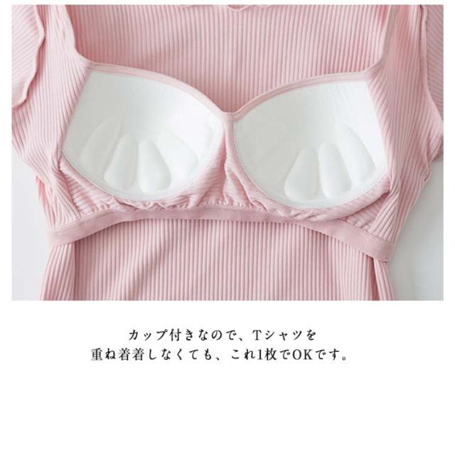 | フリルとリブがポイント!おうちコーデ、ファッションが楽しめるカップ付きトップス ストレッチが効いているので、窮屈感は軽減され、快適な着心地を楽しめます。 カップ付きなので、Tシャツを重ね着着しなくても、これ1枚でOKです。 襟口、袖口、裾までフリルがあるデザインで、タイトなシルエットにアクセントを加えてくれます。 通勤やママコーデ、ナイトウエア、ルームウエア、パジャマとしてなど幅広くお使い頂けます。 | |