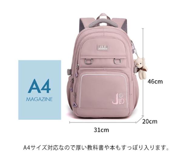 | 【1〜6年生】【大容量・防水】【5colors】 【キッズリュック】【低学年/高学年】【大容量・撥水】 お子様に負担をかけない、軽量で大容量のリュックサック。 爽やかなパステルカラー&ブラックでキュート&スタイリッシュ。 お気に入りのバッグを持てば、勉強やおでかけがもっと楽しくなる! 高密度防撥水素材使用で撥水性が高く、耐久性、耐摩耗性、雨が降ってもリュックの中身は濡れません。 ショルダーベルトは通気性と体圧分散性に優れた厚手のクッション性の高い素材使用。 A4サイズ対応なので厚い教科書や本もすっぽり入ります。 内側にも外側にも散らばりやすい小物が収納しやすいポケット付き。 キュートな見た目だけでなく機能面も充実。 内側にも外側にも散らばりやすい小物が収納しやすいポケット付き。 通学や塾、習い事、遠足、クラブ活動、修学旅行などの活動もオススメのリュックサック。 | |