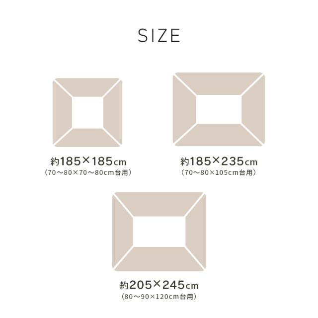 | 【185×235cmの場合】70〜80×105cmのこたつ台対応 |