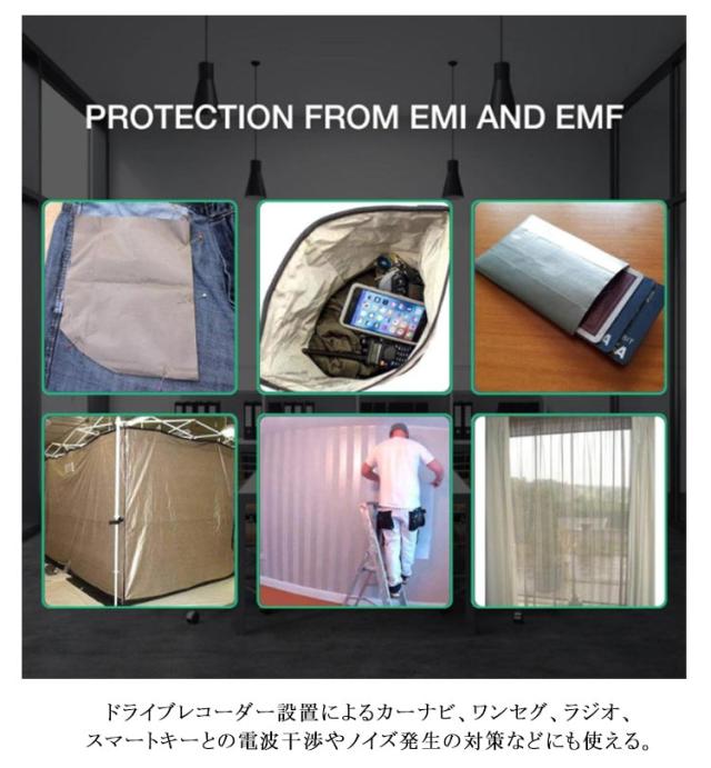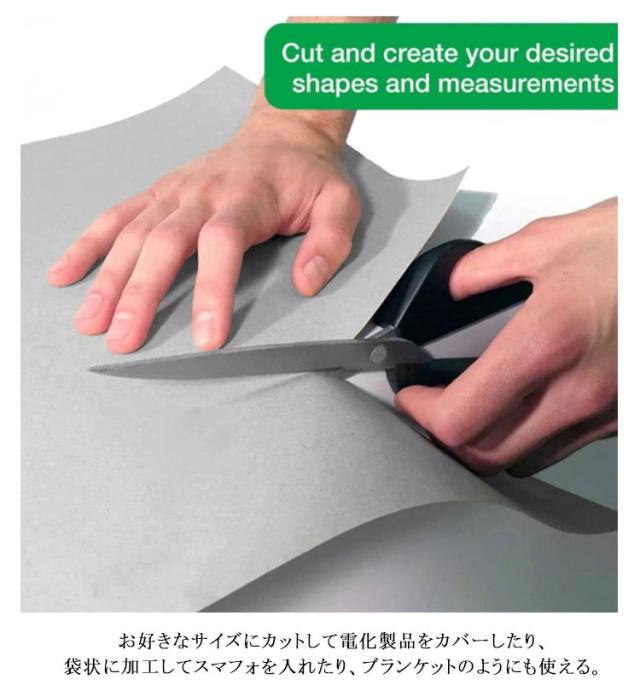| 【電磁波防止シート】【長さ5m×幅1.1m】 身の回りの電磁波が気になる電化製品(PC・スマートフォン・TV・無線ルーター・電子レンジなど)の電磁波を遮断するシート。 お好きなサイズにカットして電化製品をカバーしたり、袋状に加工してスマフォを入れたり、ブランケットのようにも使える。 ドライブレコーダー設置によるカーナビ、ワンセグ、ラジオ、スマートキーとの電波干渉やノイズ発生の対策などにも使える。 クレジットカードの磁気に記録されている情報を抜き出すスキミングや、スマートキーの特性を利用した車の盗難の防止にも。 送電線、配電線、携帯電話基地局の近くにお住まいの方、電磁波過敏症の方や、妊娠中で電磁波による影響が不安な方などにも。 | |