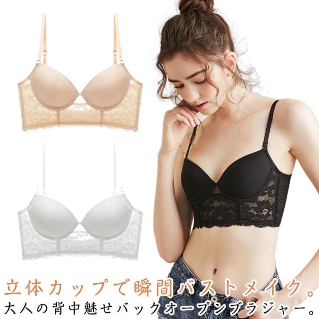 背中見せ ブラ ブラジャー ブラトップ インナー 開き 胸を小さく見せるブラ バックオープンブラ トップス 背中見せ レディース レース かわいい 大きサイズ 立体カップ