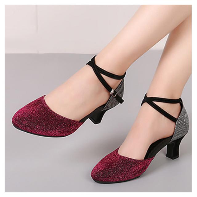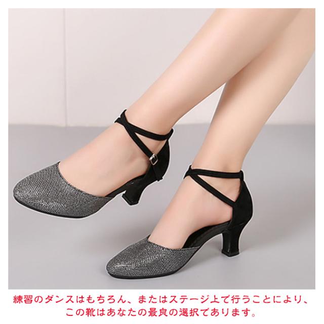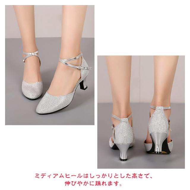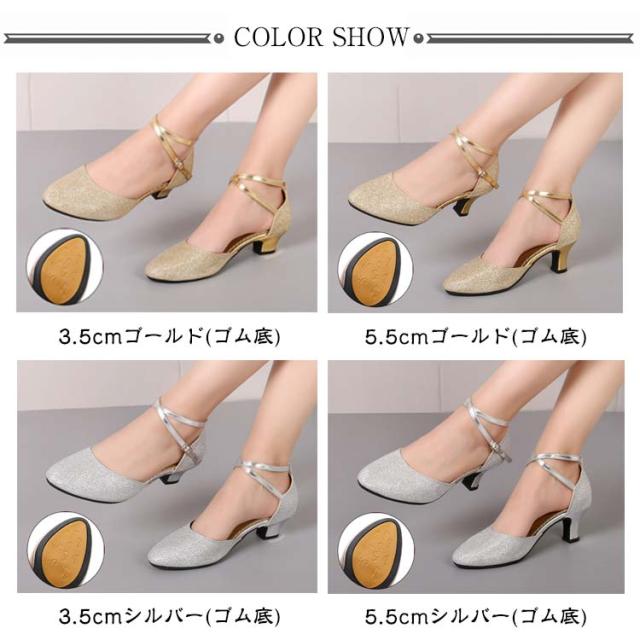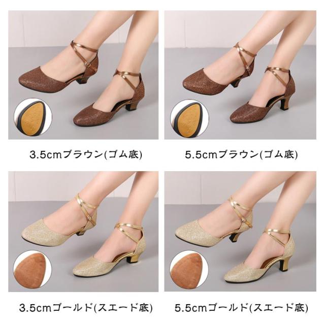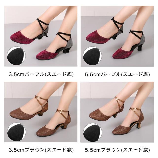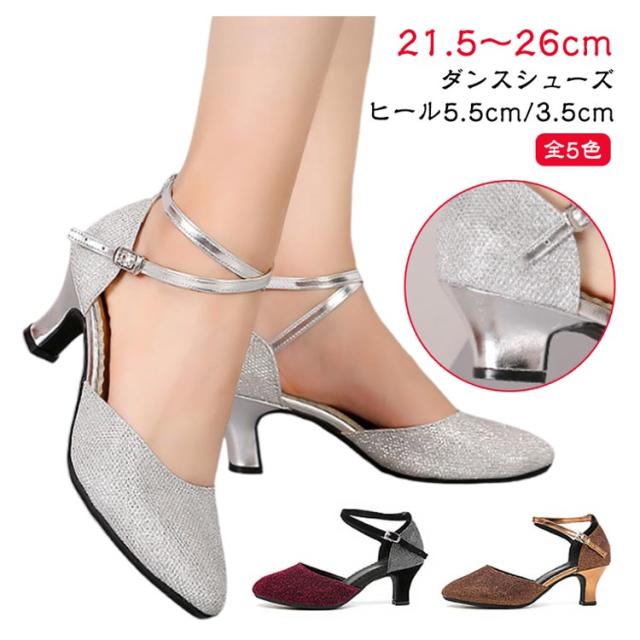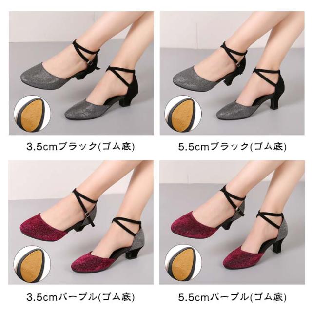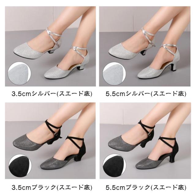 ラテン 発表会 モダン つま先あり 大きいサイズ 社交ダンスシューズ 室内/室外 ダンスシューズ ダンス シューズ ストラップ 小さいサイズ パンプス ダンスシューズ レディース 練習用 美脚 舞台 演出 ヒール5.5cm/3.5cm キラキラ