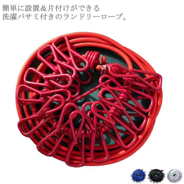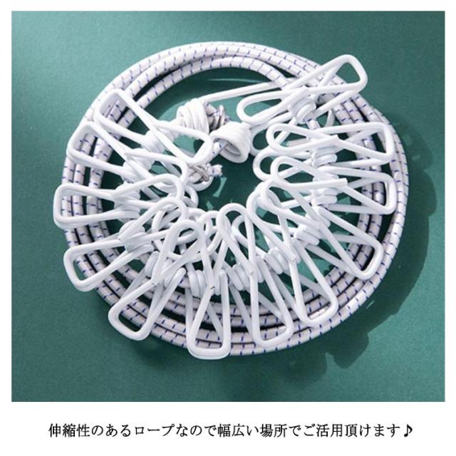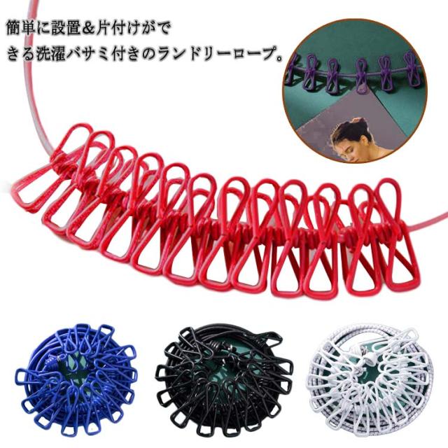 | 簡単に設置&片付けができる洗濯バサミ付きのランドリーロープ。 12個の洗濯クリップで洗濯物が固定でき、風が吹いても滑らないです。 伸縮性のあるロープなので幅広い場所でご活用頂けます♪ 靴下、ネクタイ、マフラー等様々な小物をしっかり掛けることができます。 軽量で持ち運びしやすく、バックパックに入れることができます。 室内干しはもちろん、出張や旅行・アウトドアシーンにも◎ | |