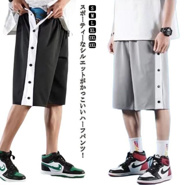 ジャージ スナップボタン バスパン スナップボタン バスケットボールパンツ サイドボタン ジム ハーフパンツ ジュニア バスケパンツ バスケットパンツ メンズ ショートパンツ レディース 筋トレ ダンス トレーニングウェア ランニング ゆったり