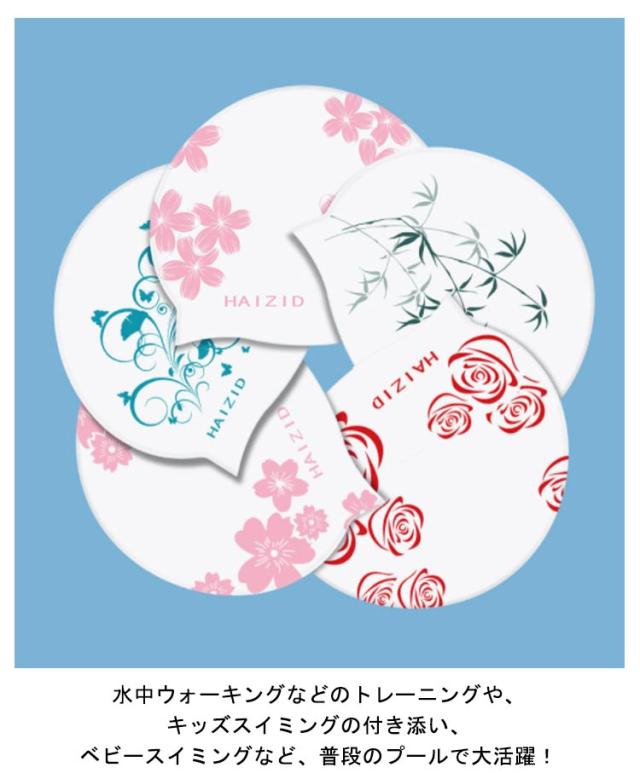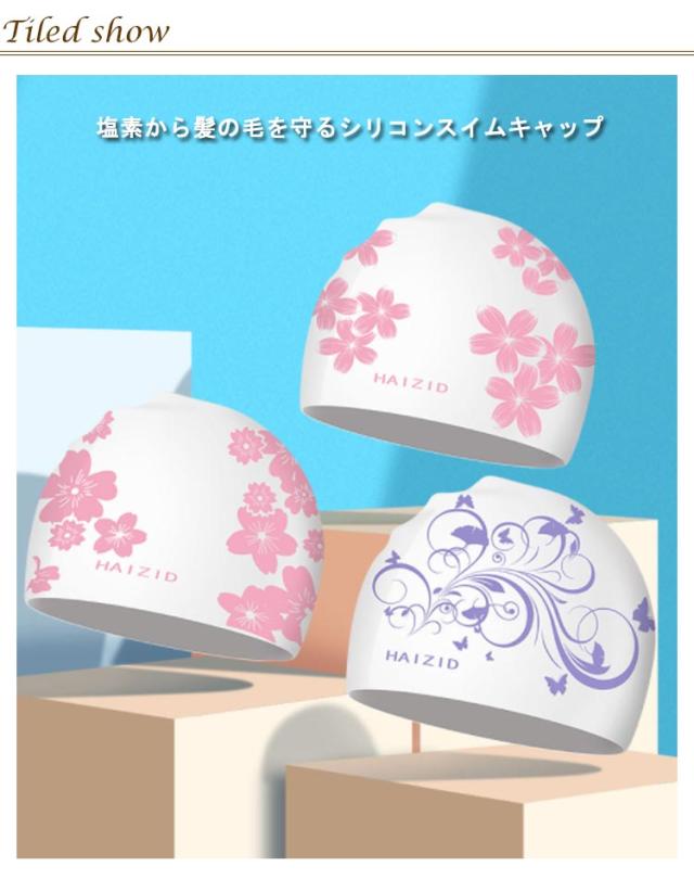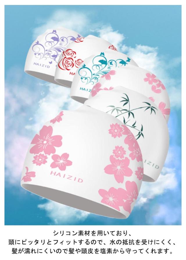 | 塩素から髪の毛を守るシリコンスイムキャップ 伸縮性抜群なので、髪の毛が長い方でも、まとめて帽子にスマートに収まります。 シリコン素材を用いており、頭にピッタリとフィットするので、水の抵抗を受けにくく、髪が濡れにくいので髪や頭皮を塩素から守ってくれます。 女性らしい美しい花柄を設計して、スイム時間を彩りします。 水中ウォーキングなどのトレーニングや、キッズスイミングの付き添い、ベビースイミングなど、普段のプールで大活躍! | |