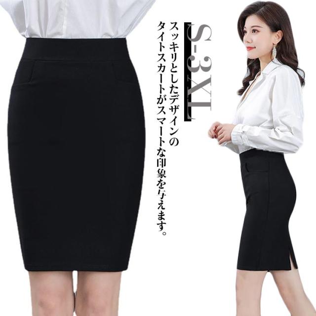 スカート ポケットあり タイトスカート ウェストゴム スカート 後ろスリット レディース スリム 事務服 ストレッチ スーツ ボトムス 細身 オフィス 制服 OL 女性 フォーマル 事務員 受付 制服 ビジネス 通勤 オフィス