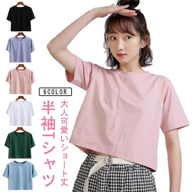 ショートTシャツ レディース トップス 半袖tシャツ カジュアル 秋 おしゃれ ゆったり 体型カバー ランドネック 大人可愛い カットソー 綿 コットン シンプル 無地 ショート丈 夏 短め 大きいサイズ Vネック 春 通勤 通学 送料無料 S M L