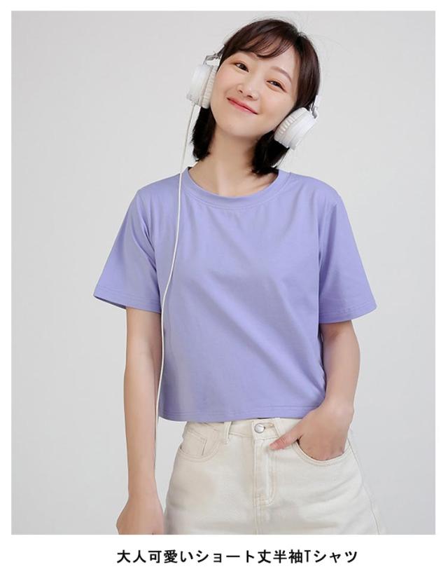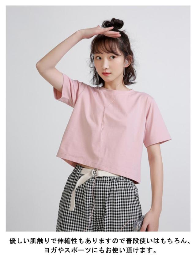 | 大人可愛いショート丈半袖Tシャツ 飽きのこないシンプルなデザインで1枚は持っておきたい万能アイテム! 優しい肌触りで伸縮性もありますので普段使いはもちろん、ヨガやスポーツにもお使い頂けます。 ハイウエストのボトムとコーデを組んでもバッチリ決まります。 豊富なカラー展開も嬉しいポイントです。 | |
