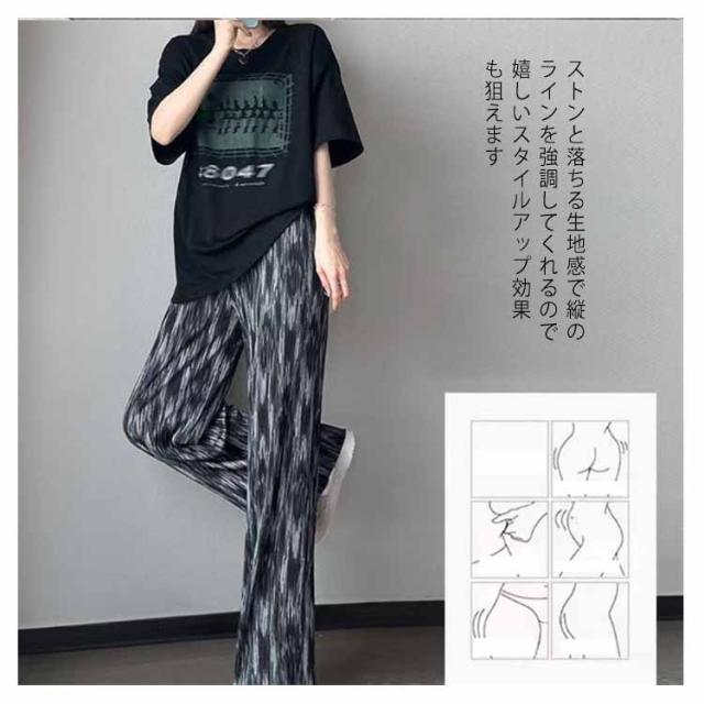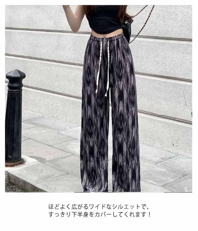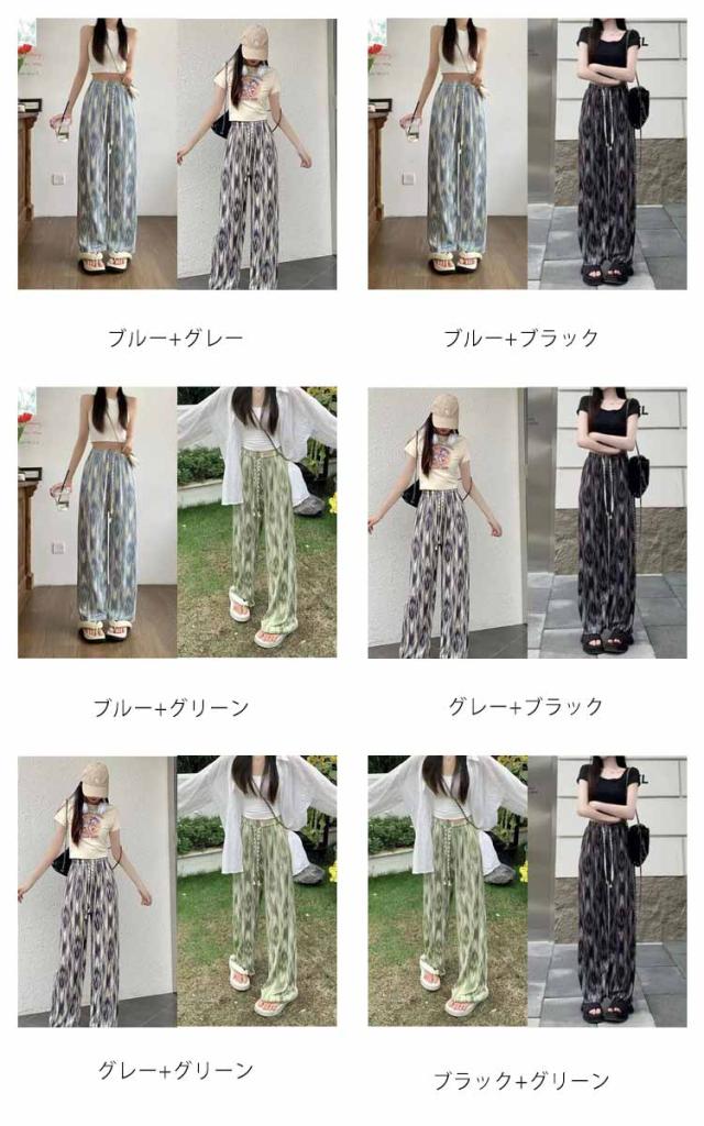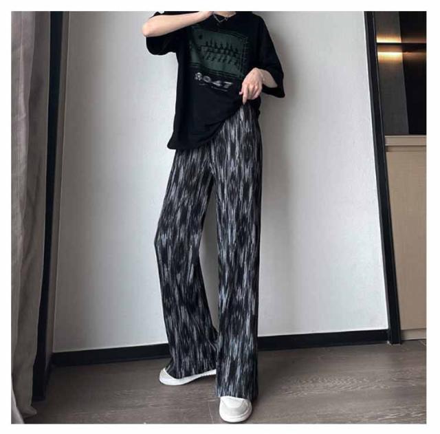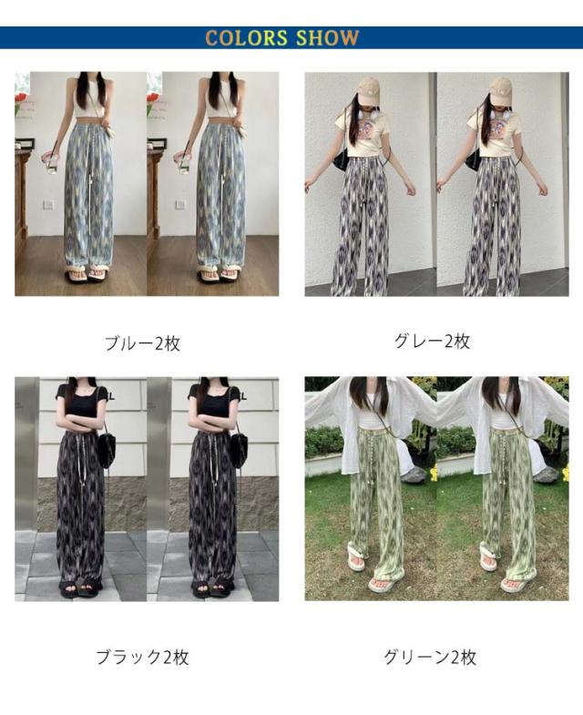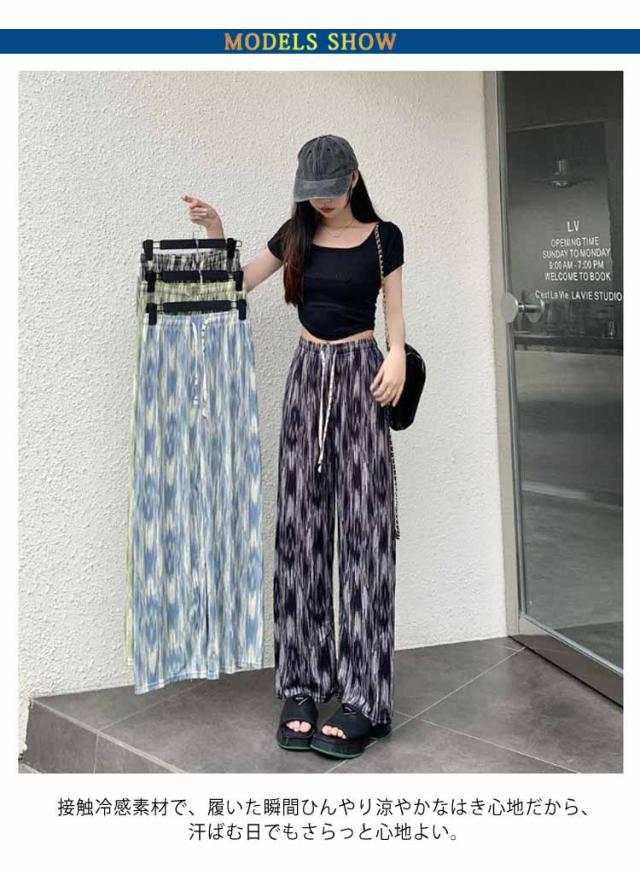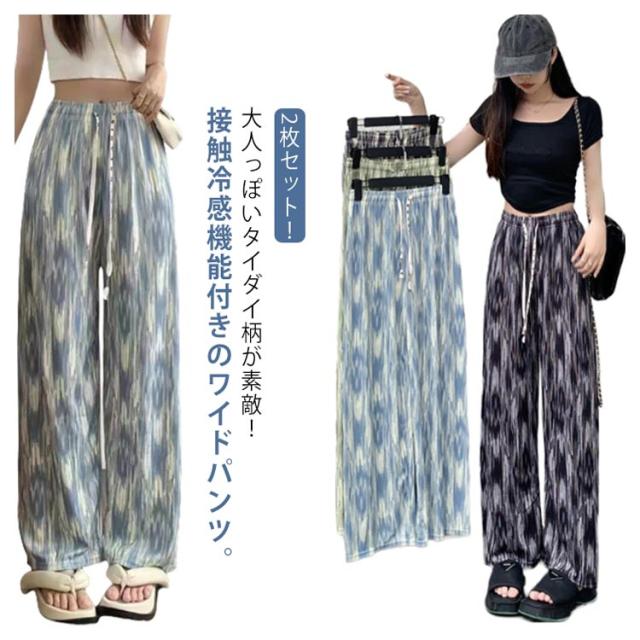 【2枚セット】接触冷感 薄手 美脚 冷感 ストレートパンツ カジュアル 涼感 ワイドパンツ タイダイ柄 ウエストゴム レディース 美脚 落ち感 ボトム 通気性 ゆったり 夏 ルームウェア 部屋着 リラックス イージーパンツ アイスシルクパンツ