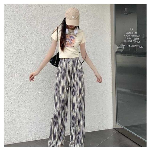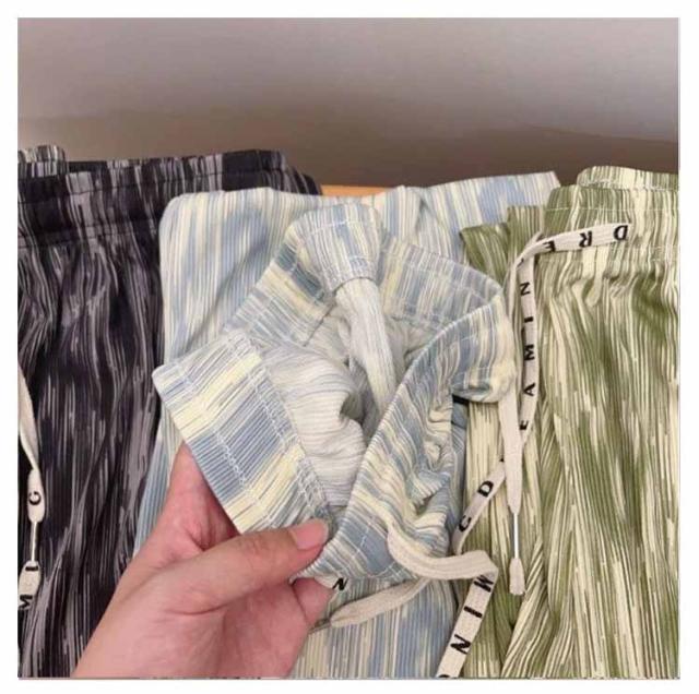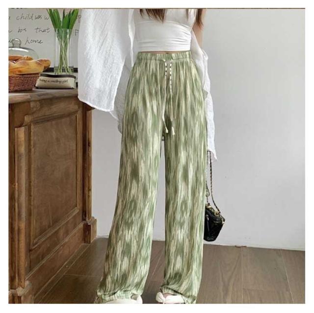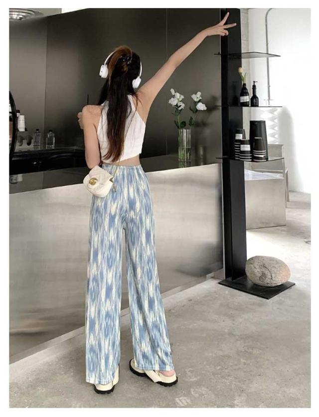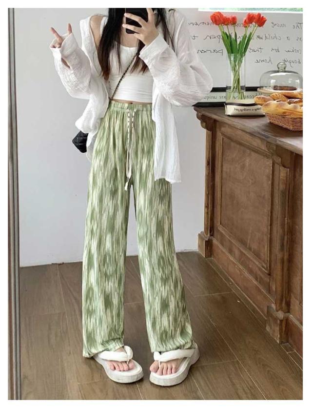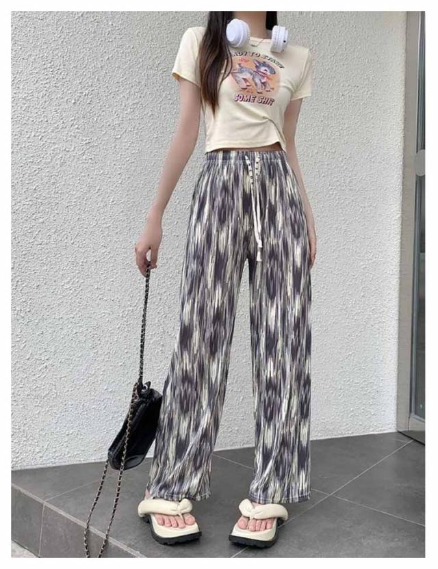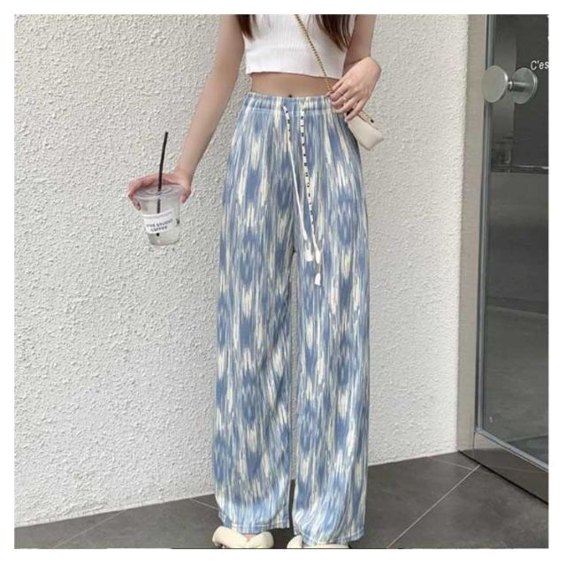 【2枚セット】接触冷感 薄手 美脚 冷感 ストレートパンツ カジュアル 涼感 ワイドパンツ タイダイ柄 ウエストゴム レディース 美脚 落ち感 ボトム 通気性 ゆったり 夏 ルームウェア 部屋着 リラックス イージーパンツ アイスシルクパンツ