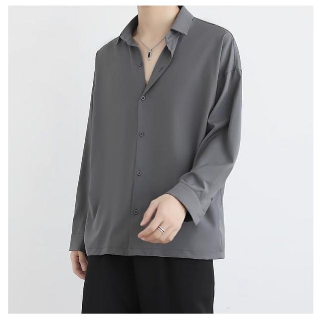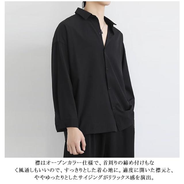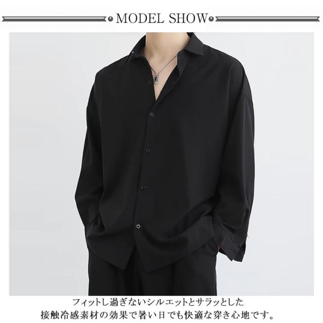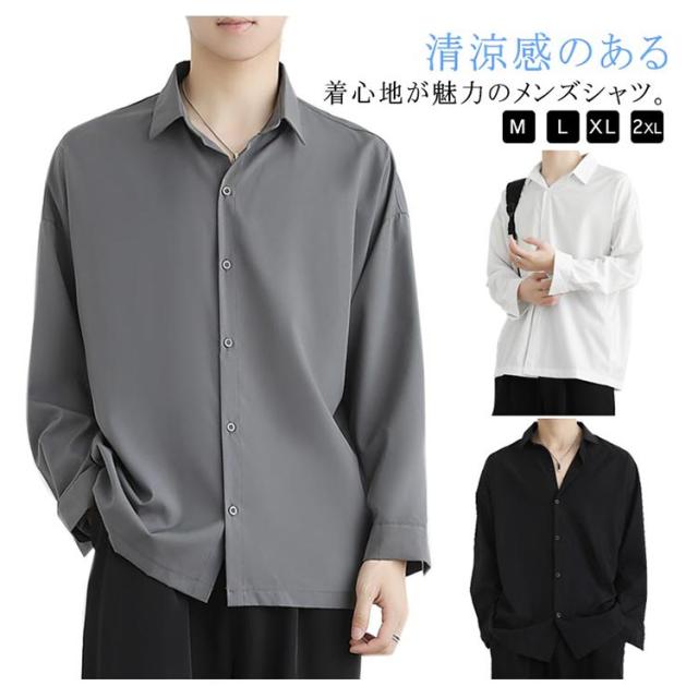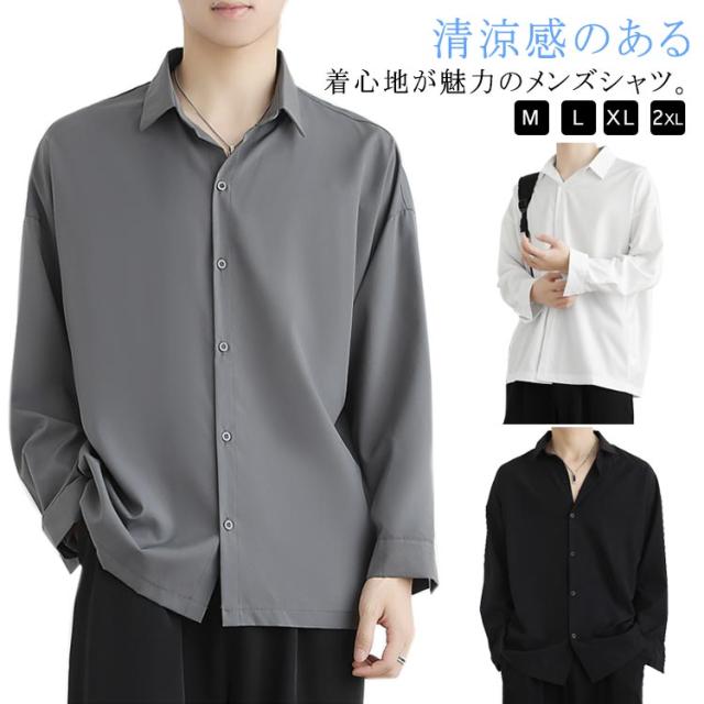 カジュアルシャツ オープンカラー 白 メンズ シャツ 長袖 ビジネスシャツ 夏 ゆったり 黒 涼しい アイスシルクシャツ 無地 ひんやり 接触冷感 接触冷感 ホワイト ブラック 大きいサイズ おしゃれ 通勤