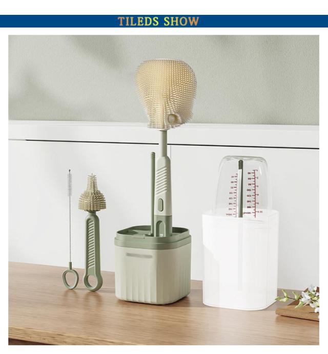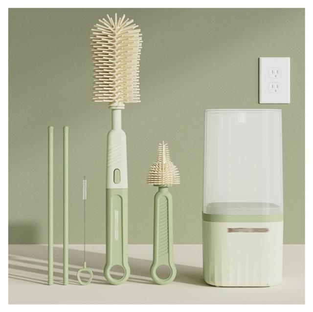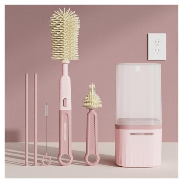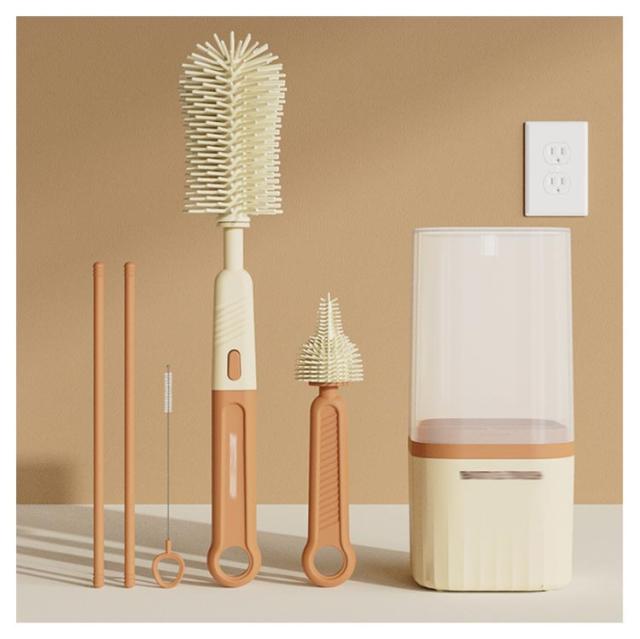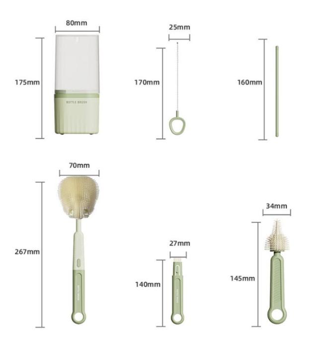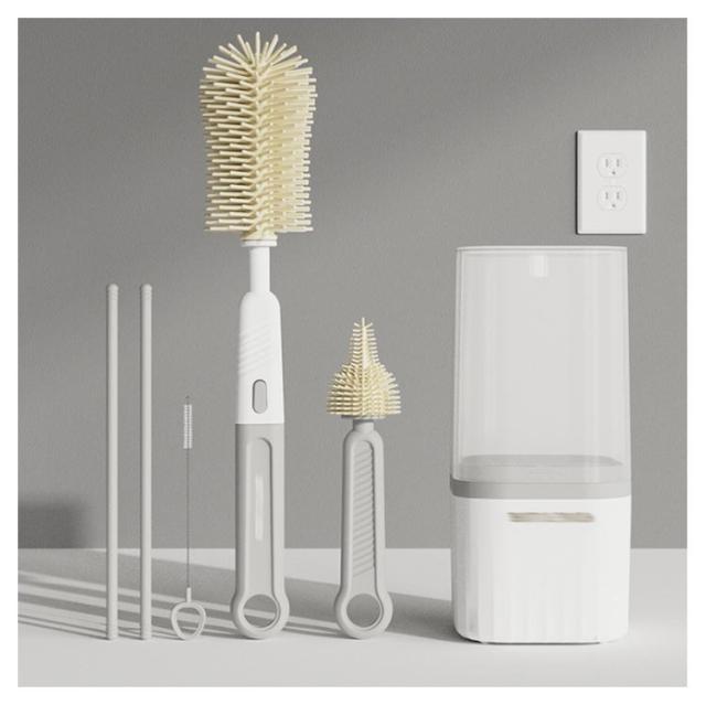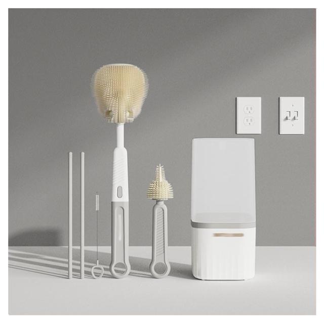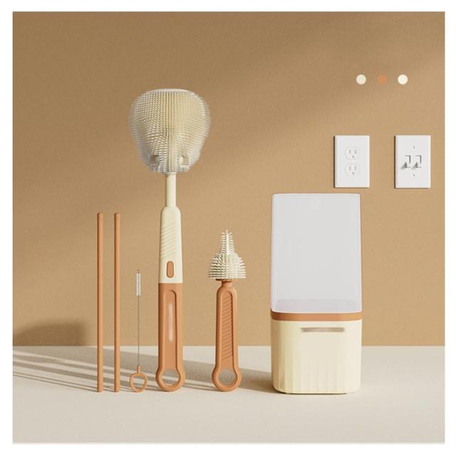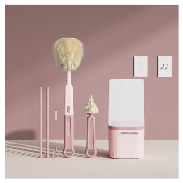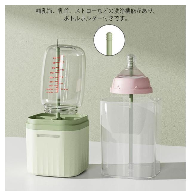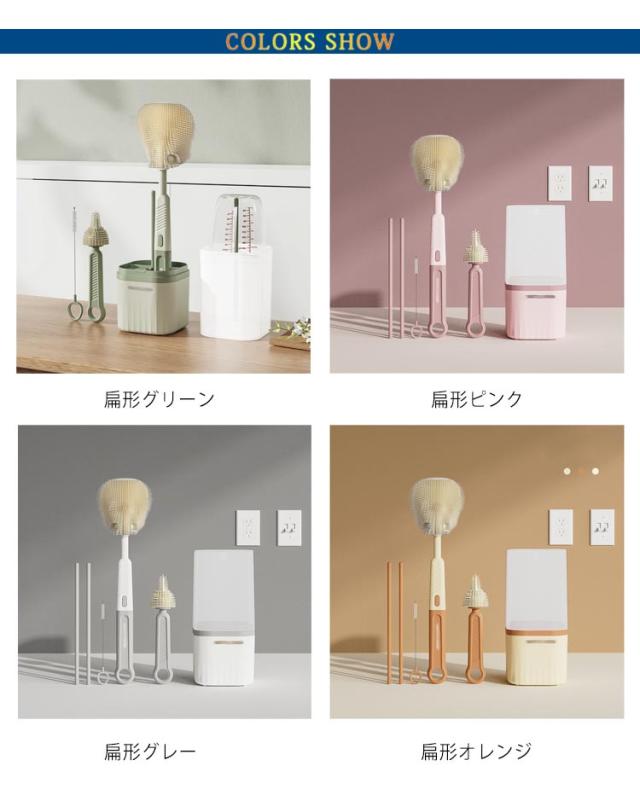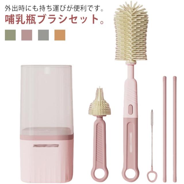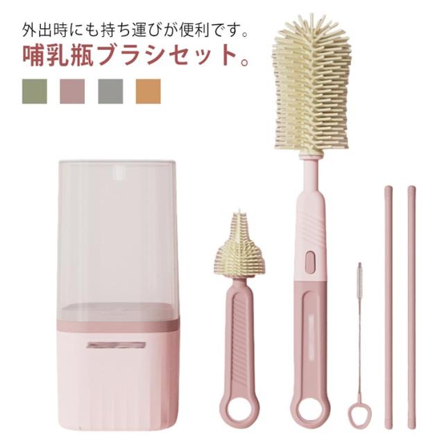 | 哺乳瓶ブラシセット。 哺乳瓶、乳首、ストローなどの洗浄機能があり、ボトルホルダー付きです。 外出時にも持ち運びが便利です。 | |