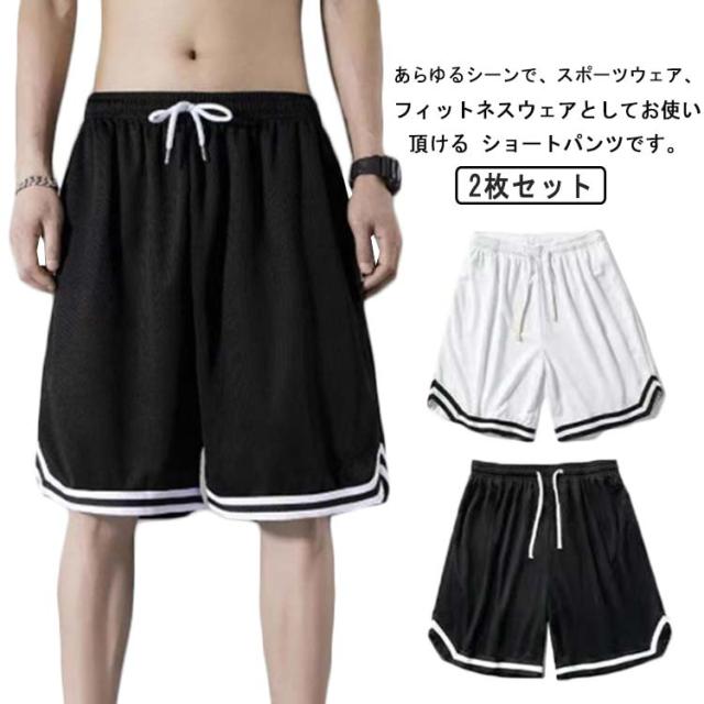 メンズ ハーフパンツ 2枚セット!接触冷感 吸水速乾 軽量 レディース バスパン バスケパンツ UV対策 ドライ ショートパンツ ストレッチ 大きいサイズ